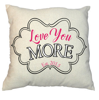 Love You More Design 20 x 20 Zippered Cotton Pillow